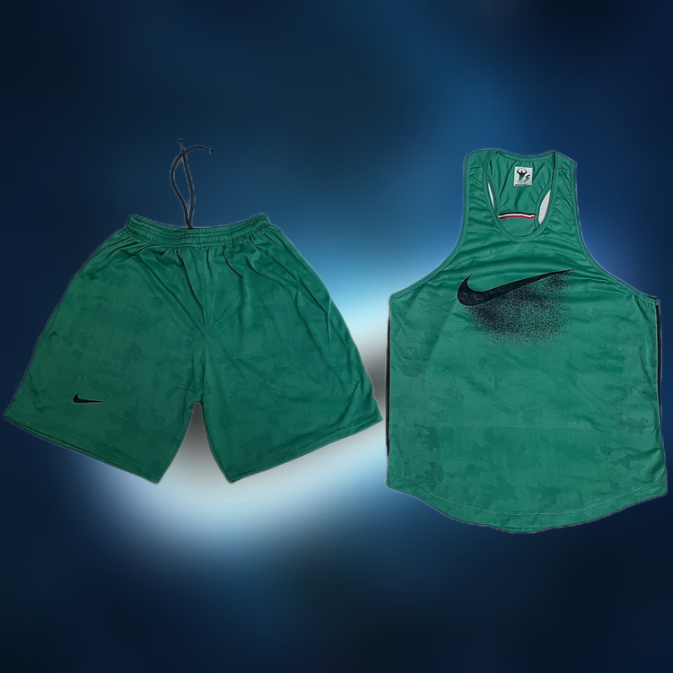 ست رکابی و شلوارک بدنسازی نایک سبز بارسلونی