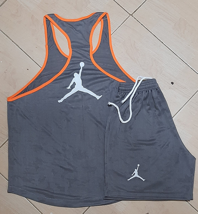 ست رکابی و شلوارک ورزشی مردانه طرح نایک جردن طوسی