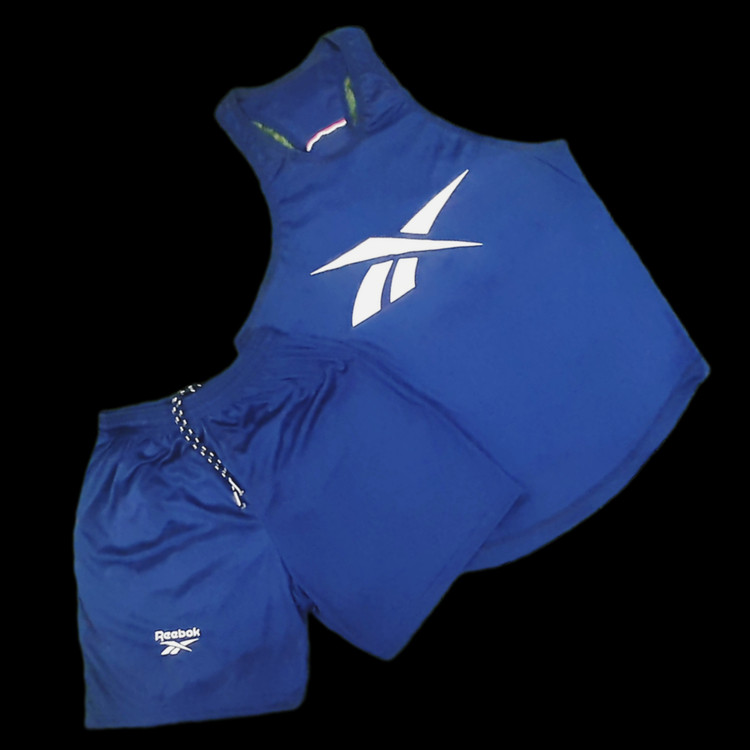 رکابی و شلوارک بدنسازی مردانه مدل ریبوک سورمه ای