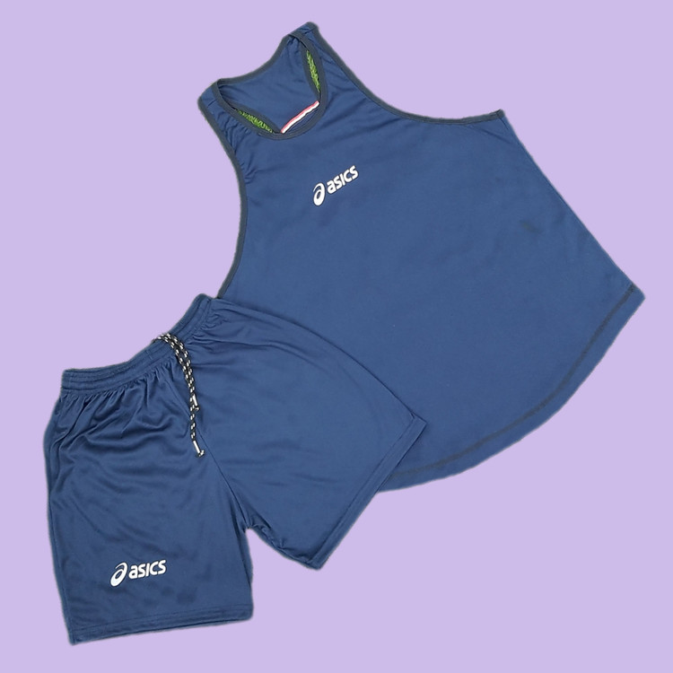 رکابی و شلوارک بدنسازی مردانه مدل asics سورمه ای