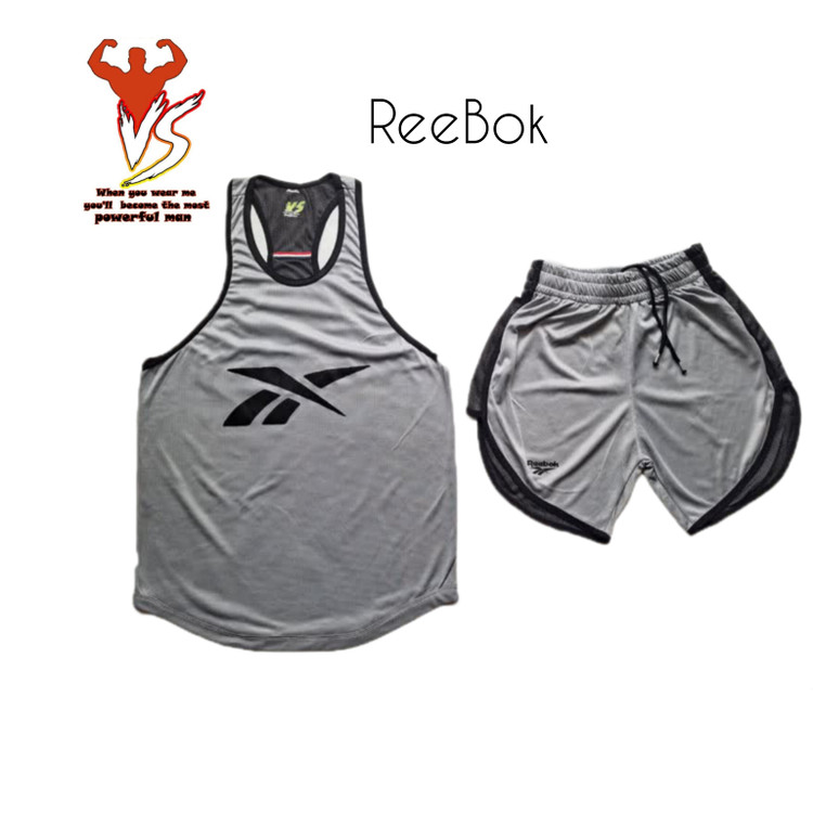 ست رکابی و شلوارک مردانه ورزشی ریبوک نقره ای