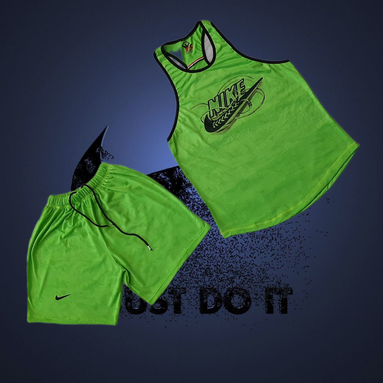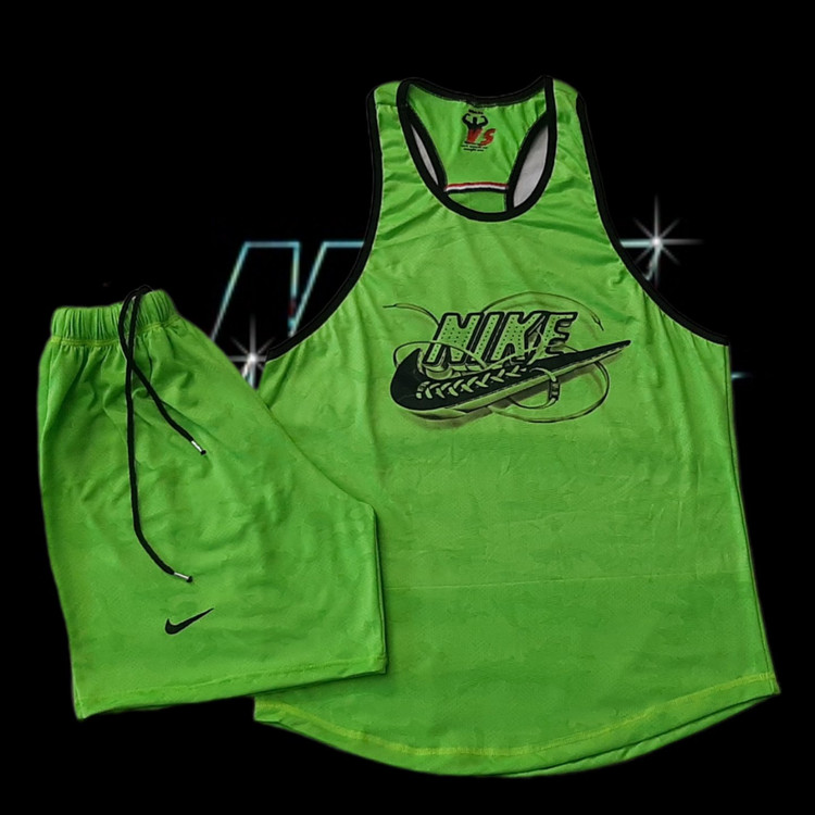 ست رکابی و شلوارک ورزشی مردانه فسفری طرح نایک کفشی