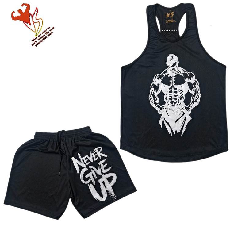 ست رکابی و شلوارک بدنسازی مدل ironman مشکی