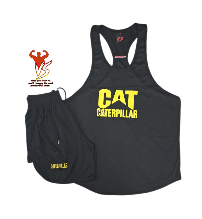 ست رکابی و شلوارک بدنسازی مدل کاترپیلار چاکدار مشکی